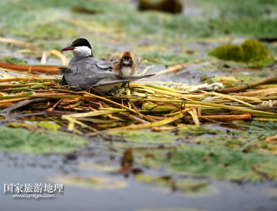 8月3日,那木斯萊濕地,須浮鷗在哺育幼鳥。