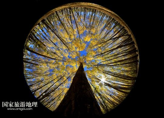 這是使用魚眼鏡頭拍攝的西藏拉薩市林周縣境內(nèi)的秋色(10月12日攝)。