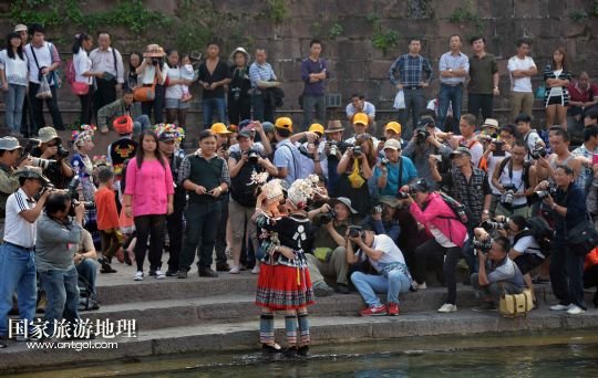 國(guó)家旅游地理 湖南湘西10月14日訊 10月13日,來(lái)自貴州的苗族群眾在鳳凰古城游覽。10月13日,湖南鳳凰古城舉辦第四屆苗族銀飾服飾文化節(jié),來(lái)自全國(guó)各地苗族聚居區(qū)的17支苗族隊(duì)伍盛裝出席,展示傳統(tǒng)苗族民俗文化,并在鳳凰古城內(nèi)幾個(gè)主要景區(qū)進(jìn)行苗服盛裝巡游。 /新華社記者趙眾志攝