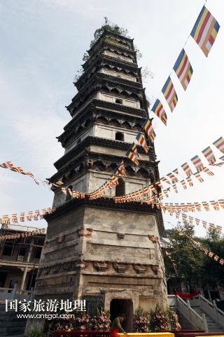 能仁禪寺中的大勝寶塔是九江市的標(biāo)志,始建于唐代宗大歷元年(公元766年),明洪武十二年(公元1379年)重建。塔為磚石結(jié)構(gòu),塔高43米,分七層六面,塔內(nèi)有磚砌梯階,可盤旋而上(10月18日攝)。