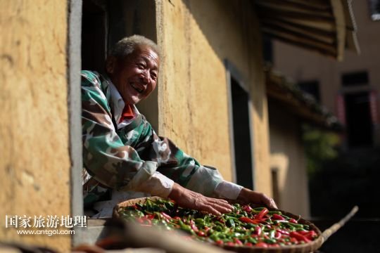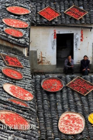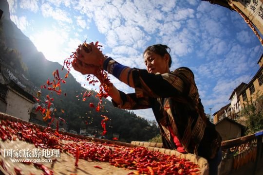 國家旅游地理 安徽黃山11月11日訊 11月10日,黃山市歙縣霞坑鎮(zhèn)湖山村住戶的屋頂晾曬著各種農(nóng)作物。秋末冬初,安徽省皖南黃山市歙縣鄉(xiāng)村農(nóng)戶種植的玉米、南瓜、辣椒等農(nóng)作物陸續(xù)收獲,古村中房前屋后、庭院屋頂曬滿果實,構(gòu)成一幅幅美麗的“曬秋圖”。 /新華社發(fā)(施廣德 攝)