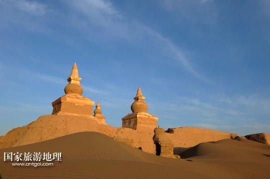國(guó)家旅游地理 內(nèi)蒙古阿拉善4月22日訊 夕陽(yáng)中的內(nèi)蒙古阿拉善盟額濟(jì)納旗黑城遺址(4月18日攝)。地處內(nèi)蒙古自治區(qū)最西端的阿拉善盟,著名的巴丹吉林、騰格里、烏蘭布和三大沙漠橫貫全境,沙漠、胡楊、戈壁、巖畫(huà)、湖泊、古城描繪出27萬(wàn)平方公里蒼茫雄渾的大漠神韻,構(gòu)成了獨(dú)具特色的沙漠文化旅游資源。 /新華社記者 張領(lǐng) 攝