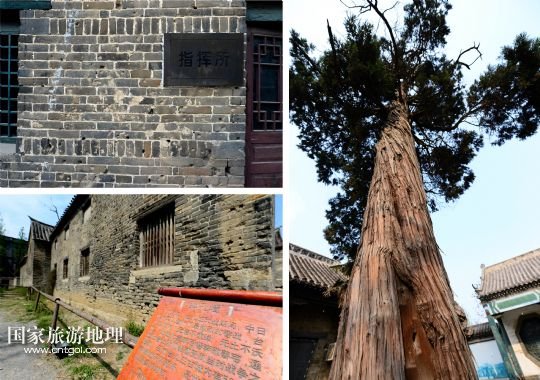 位于臺(tái)兒莊古城的臺(tái)兒莊大戰(zhàn)指揮所(左上)、民居(左下)和清真寺內(nèi)柏樹(右)上,仍保存著當(dāng)年臺(tái)兒莊大戰(zhàn)中留下來(lái)的彈孔(拼版照片,4月8日攝)。