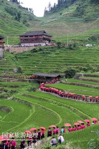 摘要:每年農(nóng)歷五月十四日、十五日是廣西桂林龍勝各族自治縣泗水鄉(xiāng)潘內(nèi)瑤寨紅瑤同胞與親朋好友聚會的日子,亦稱當(dāng)?shù)噩幷摹凹t衣節(jié)”。紅瑤同胞相約在這期間開展唱瑤歌、評寨花、傳統(tǒng)刺繡、打旗公等傳統(tǒng)特色活動。紅瑤是瑤族的一個支系,因喜穿紅色衣服而得名。