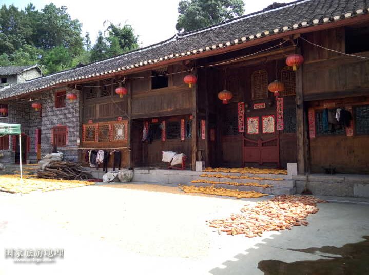 國家旅游地理 貴州黔南8月28日訊 (記者 萬棋民 攝影報道) 上圖是在黔南貴定縣的音寨,音寨是天下布依第一寨。音寨的民居依山而建,一層一層往山上延伸。從圖中可以看到,音寨民居一半是木制結(jié)構(gòu),另一半新建的則是磚石材質(zhì)。這種新與舊的連接是兩個時代的接軌,反映了改革開放前與改革開放后隨著經(jīng)濟的發(fā)展,少數(shù)民族居民的居住環(huán)境和生活水平得到了極大的提升。在圖片右邊的木制房子大門的正上方,刻著三塊密密麻麻的字,上面刻的是毛澤東語錄,而且不只這一家的木制房子上刻有毛澤主席語錄,可以看出當?shù)鼐用駥γ飨木磹壑椤?br />