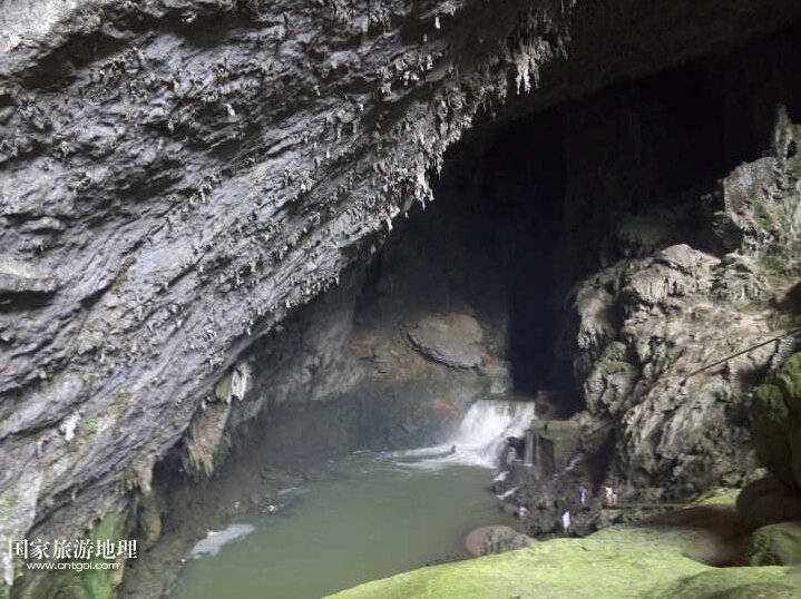 這是羅甸縣的大小井風景區(qū)的響水洞天坑,典型的喀斯特地貌景觀。這個天坑位于大井出水口西側(cè)大約200米處,坑口高500米,寬500,深200米。內(nèi)有暗河,水聲轟鳴,在坑外十里處都可以清晰聽到,故稱為響水洞天坑坑口寬敞明亮,暗河奔流,水花飛揚,氣勢磅礴,蔚然壯觀??觾?nèi)巨大的鐘乳石如寶劍懸掛在墻壁上,有的錯落城橋,有的如猛虎下山,千姿百態(tài),美不勝收。