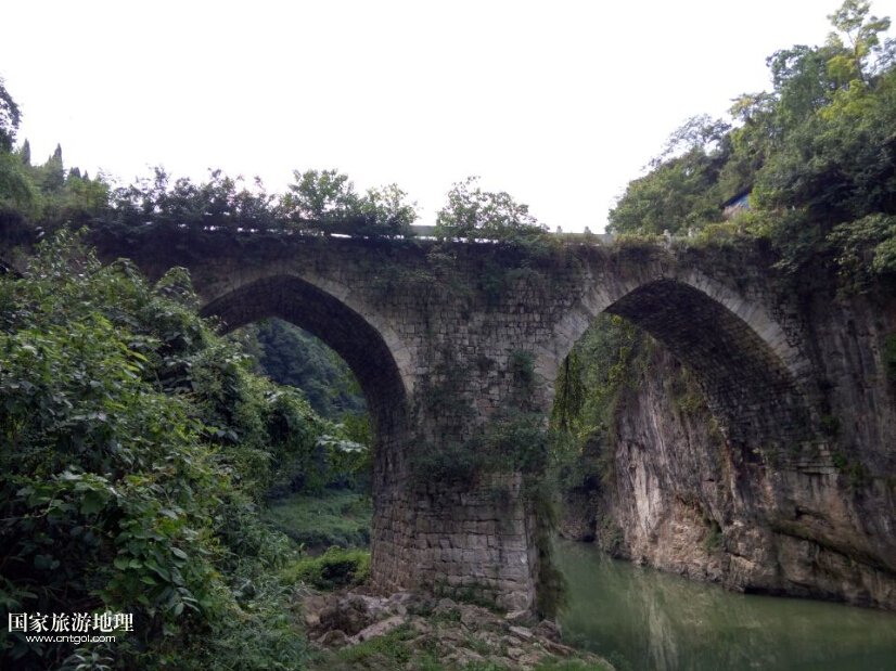 這是黔南福泉的葛鏡橋。葛鏡橋建造于明朝萬歷年間,距今已有四百多年的歷史,是當時的平越人葛鏡出資建造。當時造橋技術(shù)落后,加之洪水等自然因素,葛鏡造橋也費盡周折,造橋三次才最終建成葛鏡橋。葛鏡橋全長51.44米,3孔,大孔高9.61米,橋面寬8.5米,高約30米;三孔跨徑分別為25.62米、12.3米和6.26米;三孔拱高分別為9.61米、9.9米和5.02米。工程艱巨,雄偉壯觀,“為西南橋梁之冠”。葛鏡橋歷時數(shù)百年,至今仍堅固如初,實為罕見,也有“北有趙州橋、南有葛鏡橋”之稱。