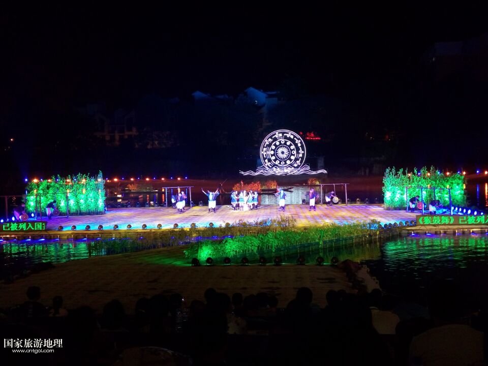 黔南之美,美在民俗風(fēng)情。黔南布依苗族自治州位于貴州的南部,這里居住著布依族、苗族、瑤族等少數(shù)民族,民俗風(fēng)情尤為濃郁。當(dāng)遠(yuǎn)方客人到來時(shí),熱情好客的少數(shù)民族會(huì)載歌載舞歡迎客人。進(jìn)入好花紅布依風(fēng)情寨前,客人要坐上木馬,喝上三杯攔門酒才能進(jìn)入寨中,所以即使不喝酒的人來到布依寨門前,在布依山歌熱情氛圍的包圍下仿佛都能豪情萬丈,千杯不醉了。荔波白褲瑤的歡迎儀式的熱情之中,帶有一種野性之美。白褲瑤是有著狩獵傳統(tǒng)的民族,客人到來之時(shí),他們會(huì)拿出獵槍,放上幾槍,以示歡迎。除此之外,布依族、苗族、瑤族等特有的民族歌舞也別有風(fēng)味,布依族山歌《好花紅》,苗族的長(zhǎng)衫龍?zhí)J笙舞、蘆笙長(zhǎng)鼓舞,瑤族的猴鼓舞、銅鼓舞等等。一臺(tái)原生態(tài)的《水韻樟江》民族歌舞實(shí)景演出,更是把布依族、苗族、瑤族等少數(shù)民族的民俗生活展現(xiàn)的淋漓盡致,讓人目不暇接?!端嵳两返奈枧_(tái)設(shè)在水上,演員上臺(tái)都是從兩邊劃著小船登上舞臺(tái),特有的民族歌舞配上現(xiàn)代化的燈光效果,給人以原生態(tài)民族歌舞大片的視覺震撼感。